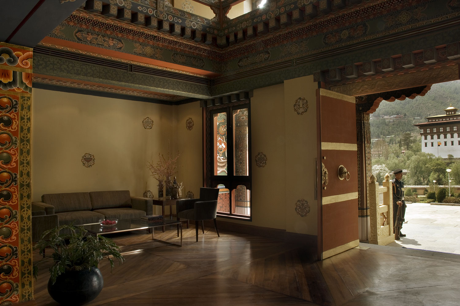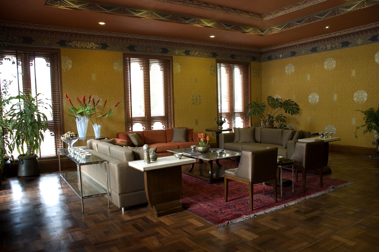 Programme: The National Assembly Hall, Banquet Room, Visitor Rooms, Visiting Roomm for Heads of State and Visiting Room for the King of Bhutan.